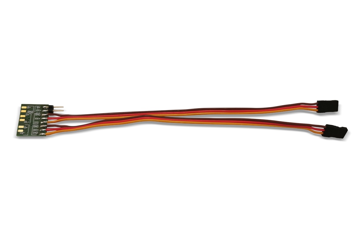 Wahlweise interne oder externe Spannungsversorgung Das Modul kann entweder direkt über die Empfängerspannung betrieben oder über eine externe Stromquelle versorgt werden. Diese Flexibilität ermöglicht den Einsatz in verschiedensten Modellkonfigurationen.