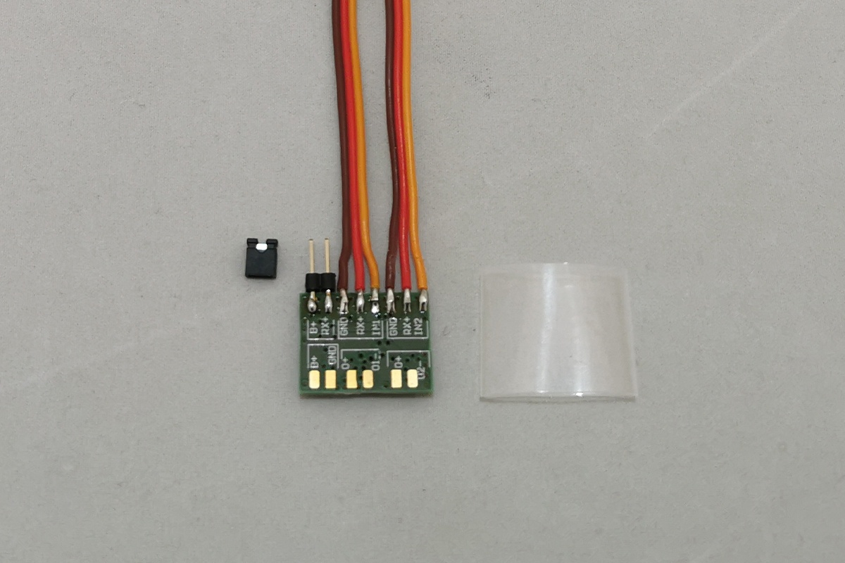 Kompaktes Design für einfache Integration Durch die offene Anschlussgestaltung ohne fest verlötete Verbraucherleitungen können Kabelstärken und Steckertypen individuell gewählt werden. Das Modul lässt sich platzsparend im Modell befestigen und eignet sich ideal für Nachrüstungen oder Neuaufbauten.