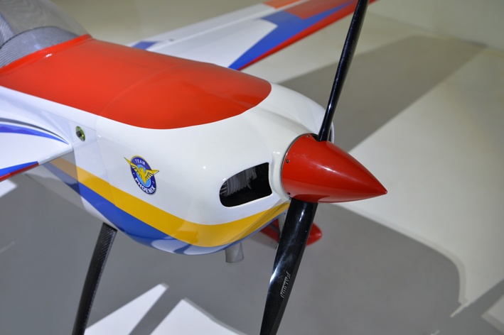 Eigenschaften: • Ausgelegt für 120cc Motoren • extrem leichte und hochfeste, lasergeschnittene Holzkonstruktion mit Verstärkungen • Landegestell aus Kohlefaser • zweiteilige Tragfläche für einfachen Transport • hoher Vorfertigungsgrad, fertig bespannt und lackiert • abnehmbare Kabinenhaube • lackierte GFK-Motorhaube • inklusive 115mm Spinner • inklusive aller zum Bau erforderliche Kleinteile (außer Elektronik) • präzise Kunstflugeigenschaften