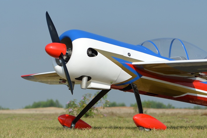 Eigenschaften: • Ausgelegt für 120cc Motoren • extrem leichte und hochfeste, lasergeschnittene Holzkonstruktion mit Verstärkungen • Landegestell aus Kohlefaser • zweiteilige Tragfläche für einfachen Transport • hoher Vorfertigungsgrad, fertig bespannt und lackiert • abnehmbare Kabinenhaube • lackierte GFK-Motorhaube • inklusive 95mm Spinner • inklusive aller zum Bau erforderliche Kleinteile (außer Elektronik) • präzise Kunstflugeigenschaften