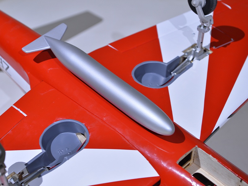 Eigenschaften: • Elektro- oder Verbrennerbetrieb möglich • extrem leichte und hochfeste, lasergeschnittene Holzkonstruktion • Vorfertigungsgrad von 95%, fertig bespannt und lackiert • Zweiteilige Tragfläche • abnehmbare GFK-Kabinenhaube • detailliertes Cockpit und Pilotenfigur • inklusive elektrischem Metall-Einziehfahrwerk • inklusive 58mm Spinner • Bomben-Attrappe separat erhältlich • viele Scale Details