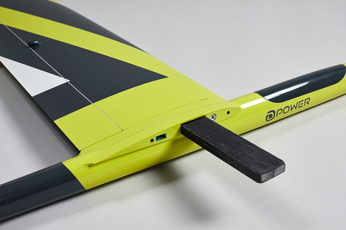 Benötigtes Zubehör • Motor: D-Power D-DRIVE IL28-2800 4:1 Getriebemotor • Regler: D-Power AVICON 50A Brushless • Akku: 4S LiPo 2200mAh (14,8V) • Klappluftschraube: 13 x 8“ @4S • Servos Querruder: 2x D-Power DS-840BBMG • Servos Wölbklappen: 2x D-Power DS-840BBMG • Servos V-Leitwerk: 2x D-Power DS-220BBMG • Sender und Empfänger: mindestens 8 Kanäle