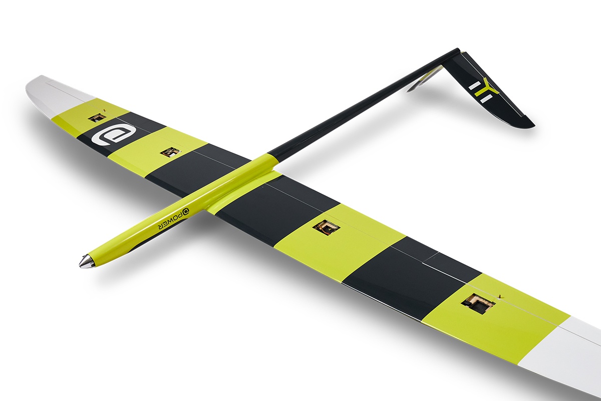 Merkmale • Elektro-Segler mit tollen Allrounder-Flugeigenschaften • mit V-Leitwerk und von oben angelenkten Wölbklappen • vollständig in hochwertiger GFK-Schalenbauweise gefertigt • CFK-Verstärkungen in Rumpf und Tragflächen • Massiver Flächenstab aus Carbon • modifiziertes RG14 Tragflächen-Profil • in der Form lackierter GFK-Rumpf • in der Form lackierte GFK-Flächen mit modernem Design • Kabinenhaube aus GFK • gute Erkennbarkeit dank kontrastreicher Blockstreifen auf der Unterseite der Flächen • kurze Bauzeit dank hohem ARF+ Vorfertigungsgrad