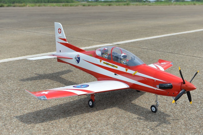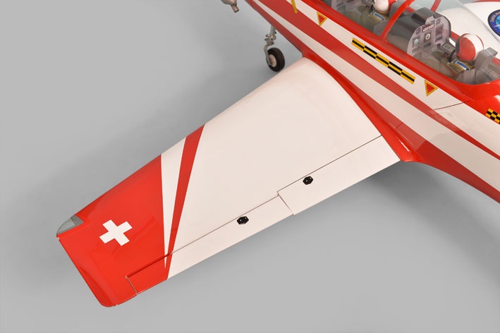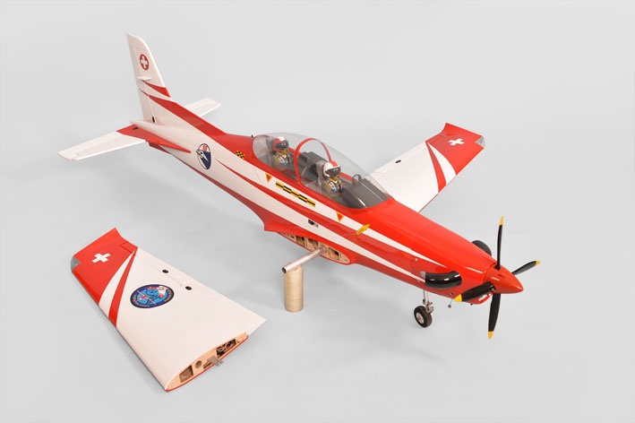 Konzipiert ist das Modell für einen 10 - 15 ccm Verbrennungsmotor oder einem 50 mm Brushless Motor. Der Zugang zum Antriebsakku erfolgt durch die abnehmbare Kabinenhaube. Die PC-21 ist bis zu 95% vorgefertigt und mit Folie bespannt, alle Kleinteile die für den Aufbau benötigt werden sind im Lieferumfang enthalten.