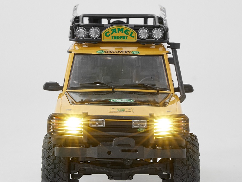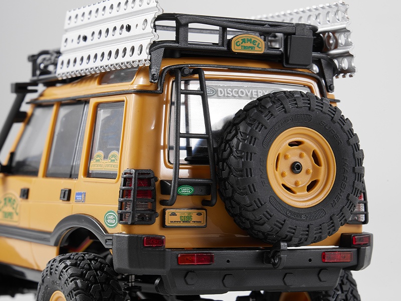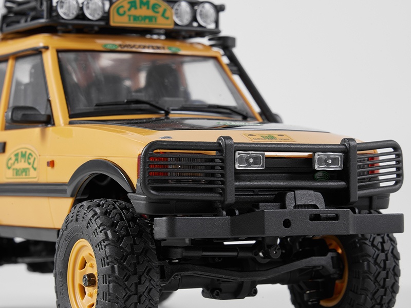 Das Modell Der FMS FCX24 Land Rover Camel Trophy, offiziell lizenziert von Land Rover verfügt über eine klappbare Hartschalen-Karosserie. Sowohl die vorderen und hinteren Stoßstangen, Kotflügelverbreitungen, Außenspiegel und Türgriffe sind abnehmbar, was z.B. Scale Enthusiasten individuelle Lackierungen vereinfacht. Aus der Camel Trophy sind 4 verschiedenen Fahrzeugtypen erhältlich: • Defender 90 • Defender 110 • Discovery • Range Rover Jedes der vier Modelle verfügt über einen Dachgepäckträger und funktionsfähige Front- und Heckscheinwerfer, die über die Fernsteuerung geschaltet werden können. Die auf dem Dach montierten Suchscheinwerfer haben festgelegte Lampenpositionen was die Installation von zusätzlichen LED vereinfacht.