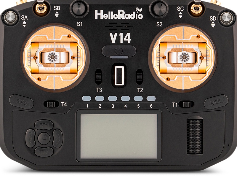 HelloRadio V14 MAX OLED 2,4GHz ELRS LBT M2 Fernsteuerung schwarz, gold