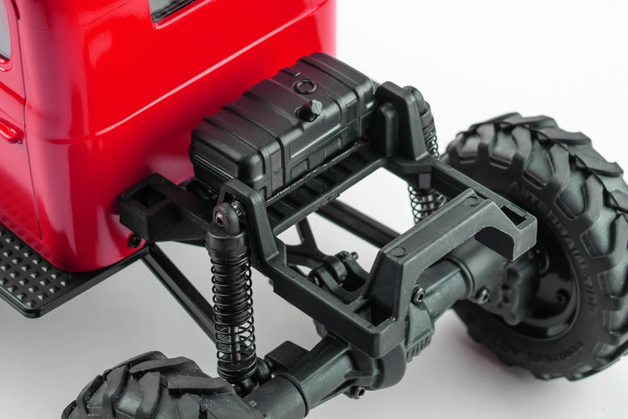 Die Crawler sind in der Regel mit vorderen und hinteren Starrachsen ausgestattet. Standardmäßig ist der FCX24 mit einer geraden Achse ausgestattet, aber das Planetendifferential kann mit hochviskosem Silikonöl ersetzt werden, um den Fahreffekt eines LSD-Sperrdifferenzials zu simulieren. Nach dem Einbau des Differentials kann die ultimative Steigfähigkeit reduziert werden – allerdings sorgt ein kleinerer Wenderadius dabei für ein stabileres Fahrverhalten bei hohen Geschwindigkeiten. Einfach ausgedrückt ist die gerade Achse für extreme Steigungen und das Differenzial für Hochgeschwindigkeitsfahrten im Gelände geeignet. Du hast die Wahl!