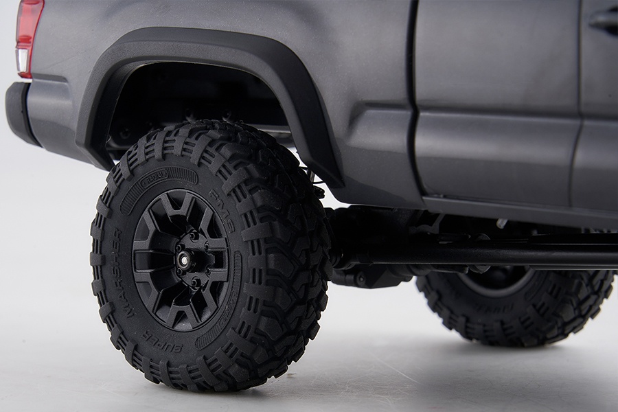 Zwei-Gang-Getriebe & 050-Motor - kompakt, aber kräftig Als erstes Fahrzeug seiner Klasse verfügt der Tacoma über ein serienmäßiges Zwei-Gang-Getriebe, das bequem über die Fernsteuerung geschaltet werden kann. In Kombination mit dem kräftigen 050-Motor liefert das Mini-Truck-Modell sowohl feinfühlige Kletterfähigkeiten im Low-Gear als auch erstaunliche Geschwindigkeit im High-Gear - perfekt für jedes Gelände.