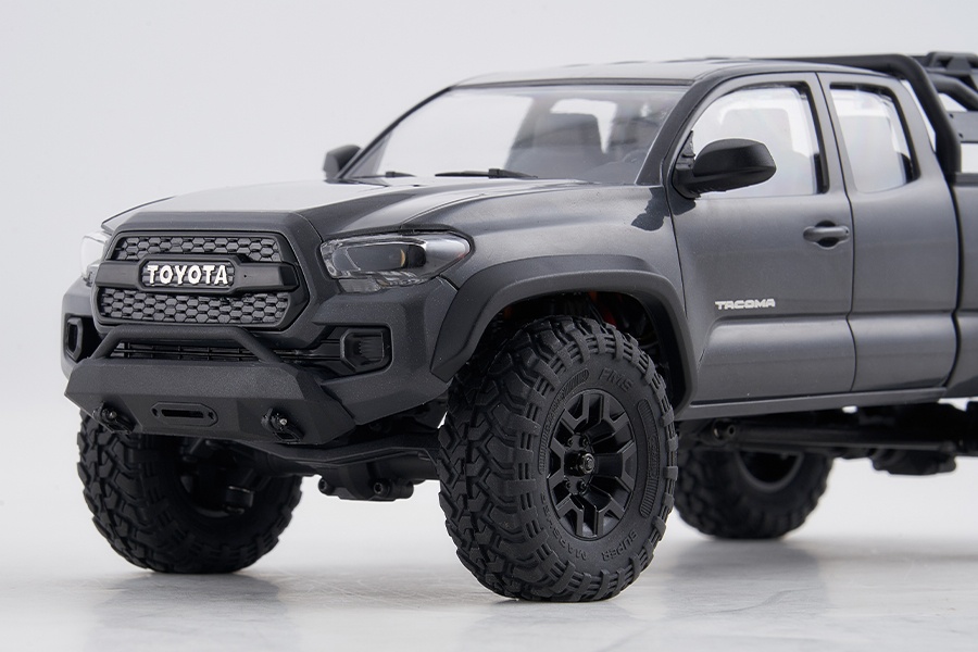 Offiziell lizenzierte Tacoma-Karosserie in drei Farben Die robuste ABS-Hartplastik-Karosserie wurde per Präzisionsspritzguss gefertigt und bildet alle markanten Details des Tacoma originalgetreu nach: Kühlergrill, Radläufe, Stoßfänger, Türgriffe, Scheibenwischer, Rückspiegel und sogar die Heckklappe wurden originalgetreu nachgebildet. Ab Werk ist der Tacoma in drei typischen Farben des Originals erhältlich: Grau, Rot und Blau - so bleibt der Scale-Look auch in 1:24 authentisch.