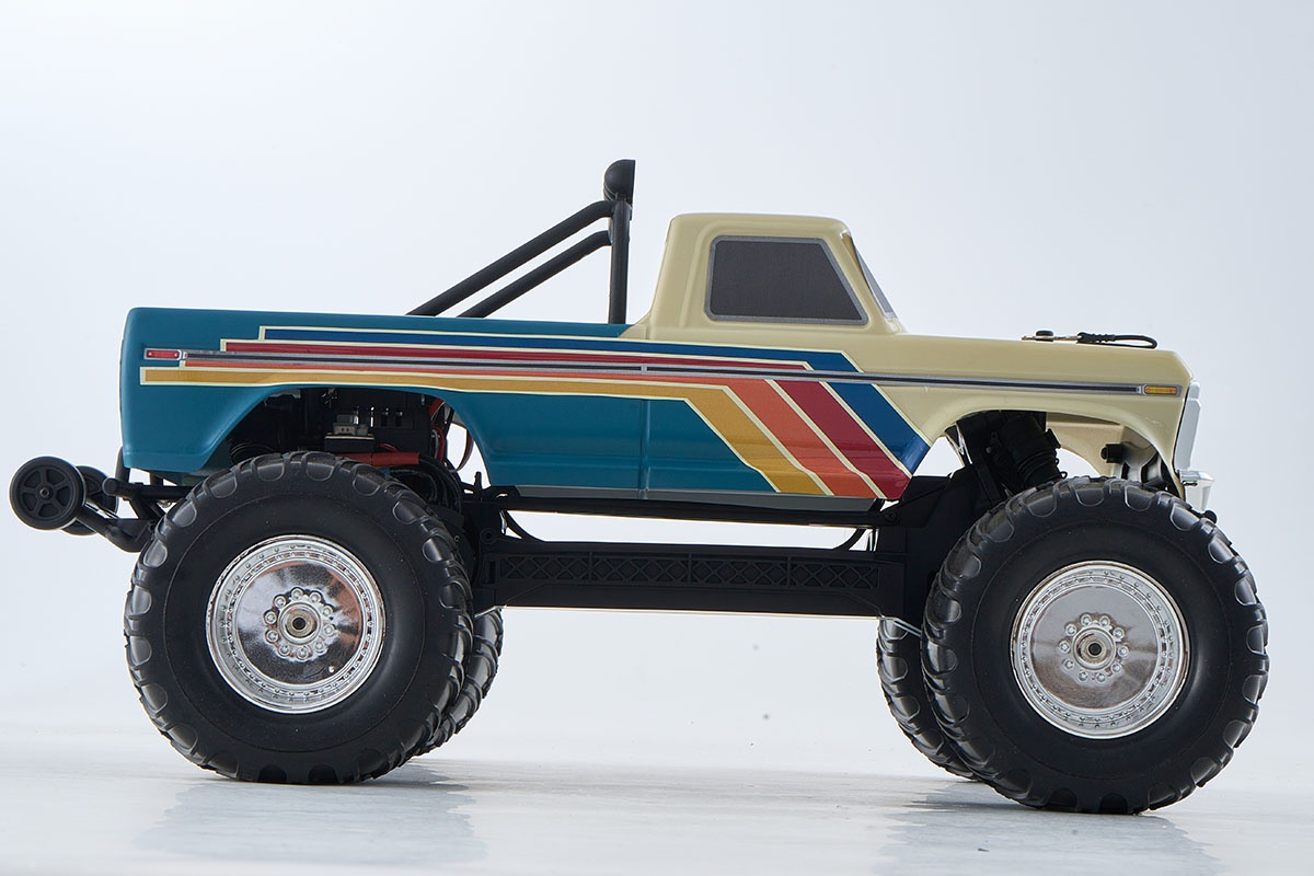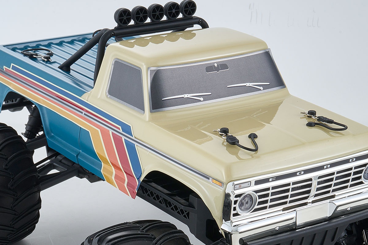 Detailgetreues Retro-Design Die stabile PC-Karosserie bildet die markanten Linien des legendären Ford F100 originalgetreu nach. Bereits ab Werk sind Fenster- und Beleuchtungsdetails sowie charakteristische Dekore angebracht. Chrom-Elemente an Stoßfängern und Kühlergrill verleihen dem Modell einen hochwertigen Look.