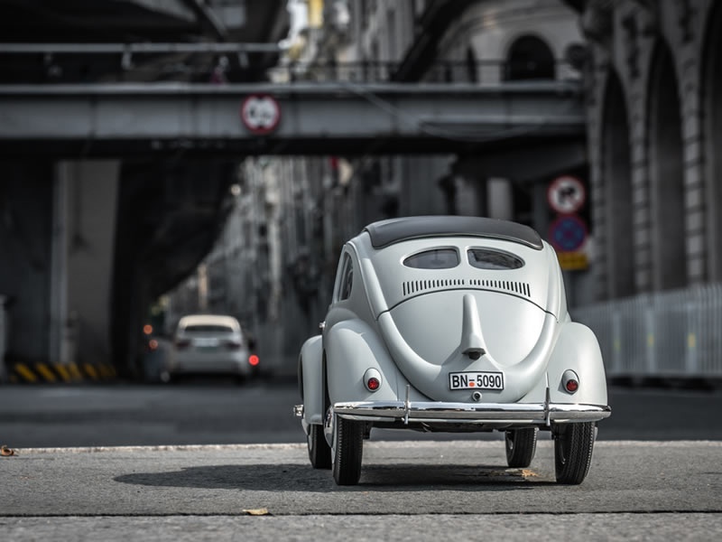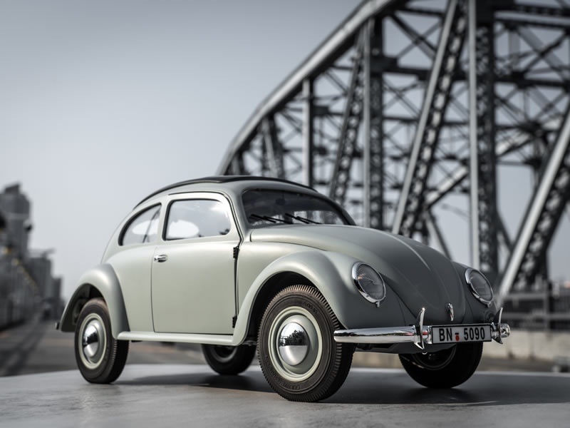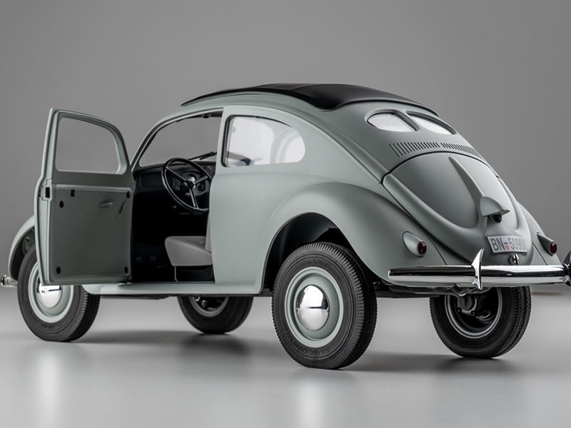 Das originale Vorbild Dr. Ferdinand Porsche, der Gründer der Porsche Car Company, war ein genialer Konstrukteur, dessen Designideen bis heute viele beeinflusst haben. Während Ferdinand Porsche neue Autos konstruierte, führte Adolf Hitler Krieg in Europa und stürzte die Welt ins Chaos. Die Schicksale dieser beiden Österreicher waren in den 1930er Jahren miteinander verwoben, als Hitler dem deutschen Volk nach seiner Wahl zum Führer des Dritten Reiches zwei Versprechen gab: zum einen ein Steak zum Abendessen, zum anderen ein Auto für jede deutsche Familie. Das Auto musste ganz bestimmte Anforderungen erfüllen: es sollte zwei Erwachsene und drei Kinder gleichzeitig befördern können und eine Geschwindigkeit von bis zu 100 km/h erreichen, dabei aber nicht mehr als 1000 Reichsmark kosten. Das sollte der neue Volkswagen sein. Tatsächlich wurde während des gesamten Krieges keines dieser Autos an das Volk verkauft. Sie wurden alle von der Armee beschlagnahmt und in Militärfahrzeuge umgewandelt. Die zivile Nachkriegsversion war dann der Käfer, der später weltberühmt wurde.