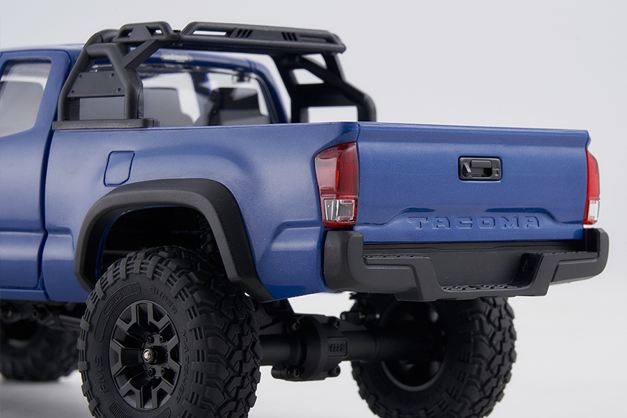 Offiziell lizenzierte Tacoma-Karosserie in drei Farben Die robuste ABS-Hartplastik-Karosserie wurde per Präzisionsspritzguss gefertigt und bildet alle markanten Details des Tacoma originalgetreu nach: Kühlergrill, Radläufe, Stoßfänger, Türgriffe, Scheibenwischer, Rückspiegel und sogar die Heckklappe wurden originalgetreu nachgebildet. Ab Werk ist der Tacoma in drei typischen Farben des Originals erhältlich: Grau, Rot und Blau - so bleibt der Scale-Look auch in 1:24 authentisch.