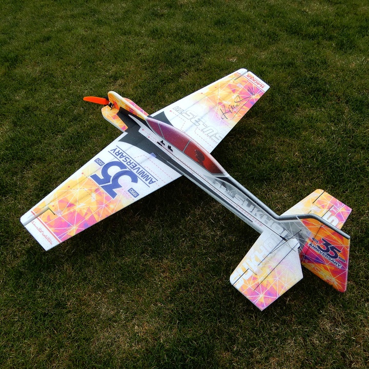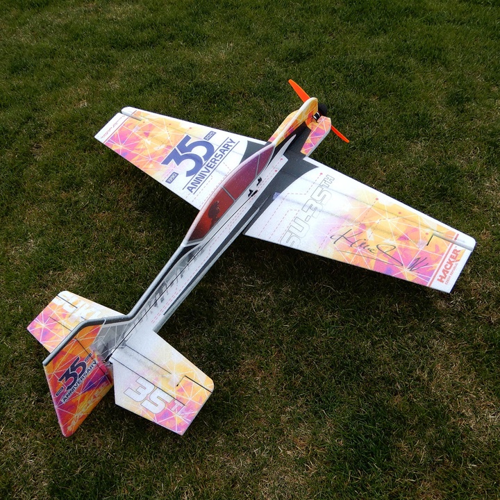 35 Jahre Hacker Sukhoi SU-35 Jahre Limited Edition Anlässlich des 35-jährigen Jubiläums von Hacker Model Production ist die SU-35th ein Modell in limitierter Auflage, das vom Kunstflugzeug SU-29 inspiriert wurde. Diese neue „Sukhoi“ bietet eine hervorragende Manövrierfähigkeit, einen robusten, mit Karbonstäben verstärkten Rumpf und präzise gefräste Teile. Das verbesserte Fahrwerk sorgt für sanftere Starts, während große Querruder und fein abgestimmte Oberflächen für hervorragende Flugleistungen sorgen. Eine perfekte Wahl für Präzisionskunstflug auf Flugplätzen und kleineren Flugplätzen.