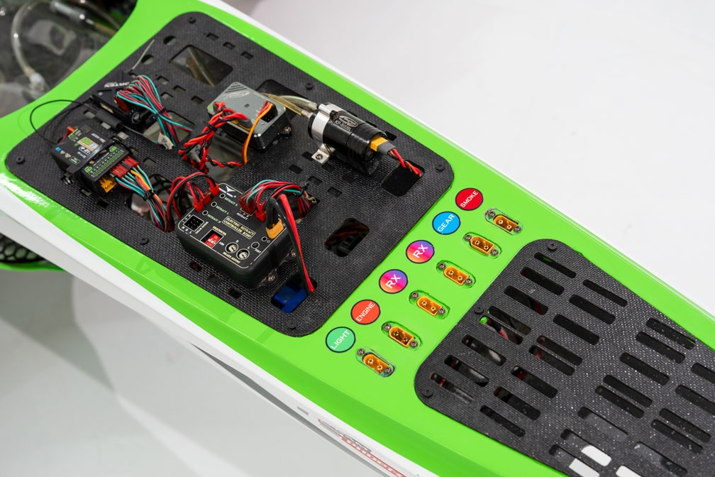 Leicht, stabil und voll ausgestattet Die extrem leichte Voll-Composite-Konstruktion sorgt für maximale Festigkeit bei geringem Gewicht. Die in der Form lackierte Oberfläche garantiert eine hochwertige Optik ohne sichtbare Nähte. Tragflächen und Leitwerke sind abnehmbar, das Smart-Lock-System ermöglicht eine werkzeuglose Montage. Der geteilte Rumpf erleichtert Transport und Aufbau erheblich, während die magnetisch gesicherte Kabinenhaube schnellen Zugang zur Technik bietet.