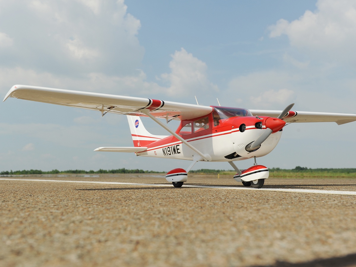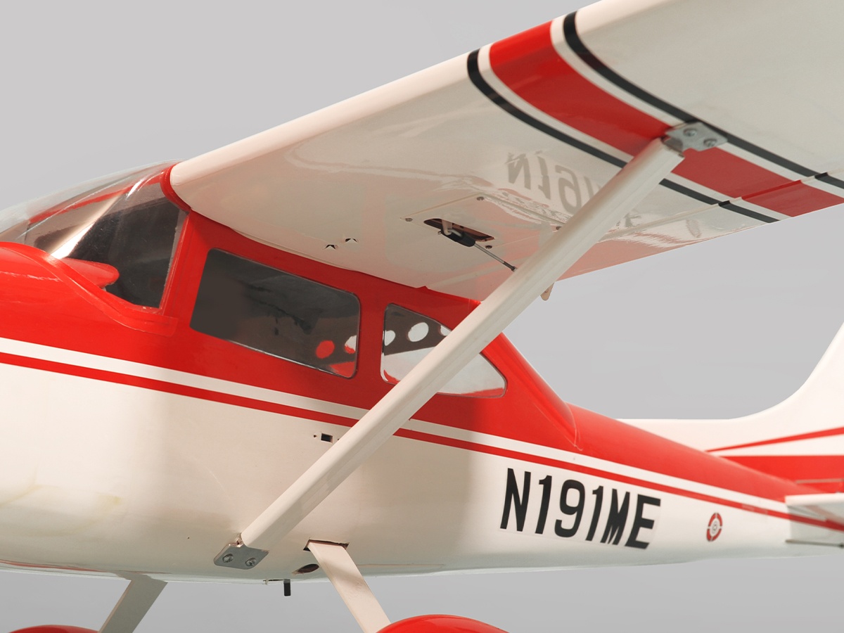 Die Flugeigenschaften der kleinen Cessna 182 Skylane sind vergleichbar mit denen eines Trainermodells. Das Modell ist komplett aus lasergeschnittenen Holzteilen gebaut und mit Folie bespannt. Das Modell ist gleichermaßen für Glühzünder- oder Elektroantrieb geeignet. Die funktionierenden Landeklappen machen Starts und Landungen zu einem vorbildgetreuen Vergnügen.