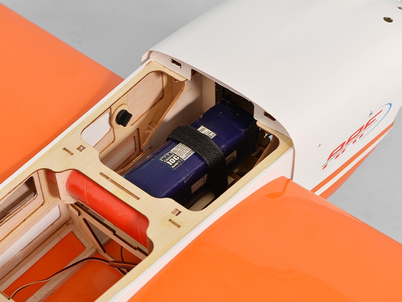 Holzkonstruktion mit enorm hohen Vorfertigungsgrad Das Modell ist in extrem leichter und verstärkter Holzbauweise gefertigt. Dabei besticht die lasergeschnittene Konstruktion durch einen enorm hohen Vorfertigungsgrad, wodurch sich der Bauaufwand nahezu auf den Einbau von Antrieb und Elektronik reduziert. Unter der großen abnehmbaren GFK-Kabinenhaube befindet sich viel Platz für den Einbau der Elektronik. Die Edge ist komplett fertig mit Folie bespannt.