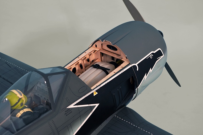 Zahlreiche Scale Details Die Focke Wulf von Phoenix Model verfügt ab Werk über zahlreiche Scale Details. Besonderes Highlight ist das detaillierte Cockpit und die fertig lackierte Pilotenfigur. Doch nicht nur am Boden ist das Modell seinem Vorbild zum Verwechseln ähnlich – auch in der Luft verfügt die Focke Wulf über ein beeindruckend vorbildgetreues Flugbild.